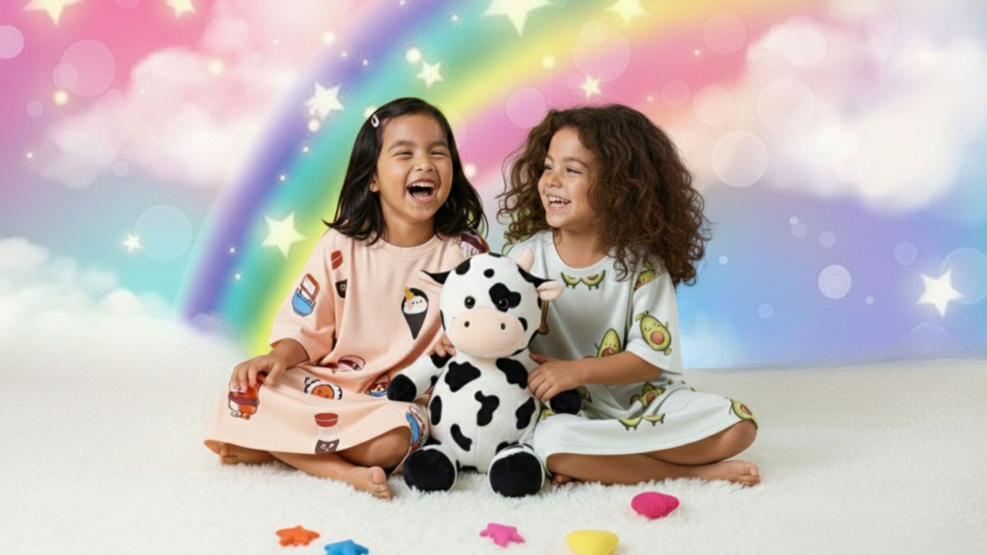 The moment they saw me wearing the same print, their happy giggles made my heart so full. It really felt like I made the perfect choice. My girls were super excited when they saw these cute pieces. They are very comfortable to wear, and I bet your kid will surely like the oversized tee too. These pyjamas are soft, smooth, and stretchy. Fabric is gentle on our skin, and the cute prints make bedtime feel extra special and full of love. Bedtime has never been this cozy and lovely! ❤️